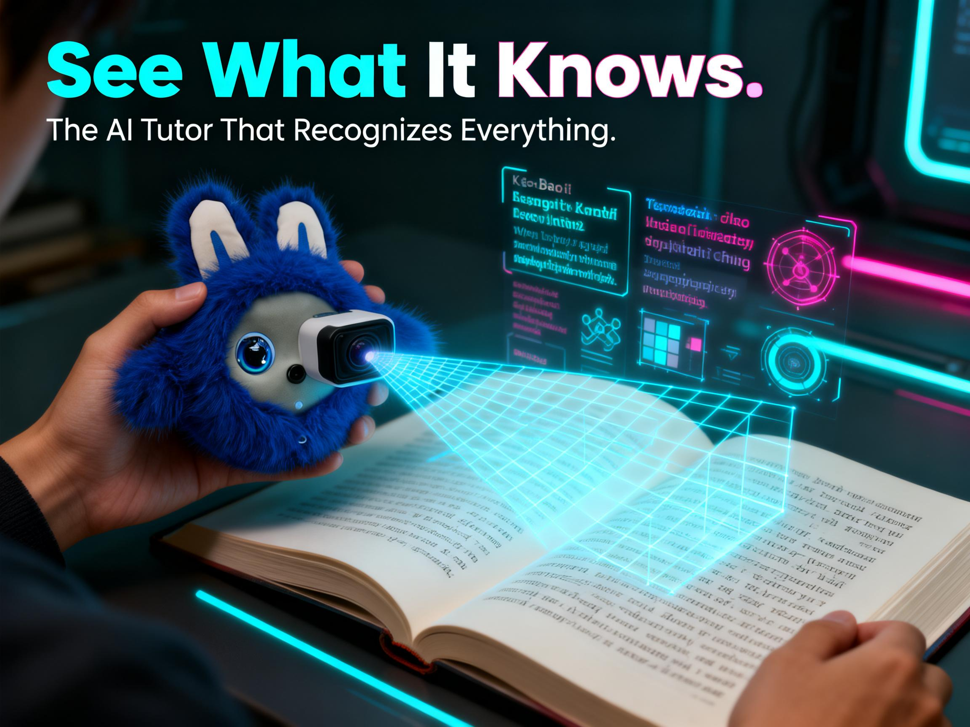 - 2MP Camera: Scans and explains objects, books, and text.
